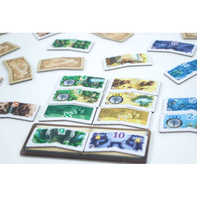 In elke kleur zijn er 15 expeditietegels. De waarden ervan lopen op vanaf 2 tot en met 10. Verder zijn er per kleur ook 3 onderzoekstegels. U kunt er een expeditie mee starten om de waarde ervan te verdubbelen, verdrievoudigen of zelfs verviervoudigen.