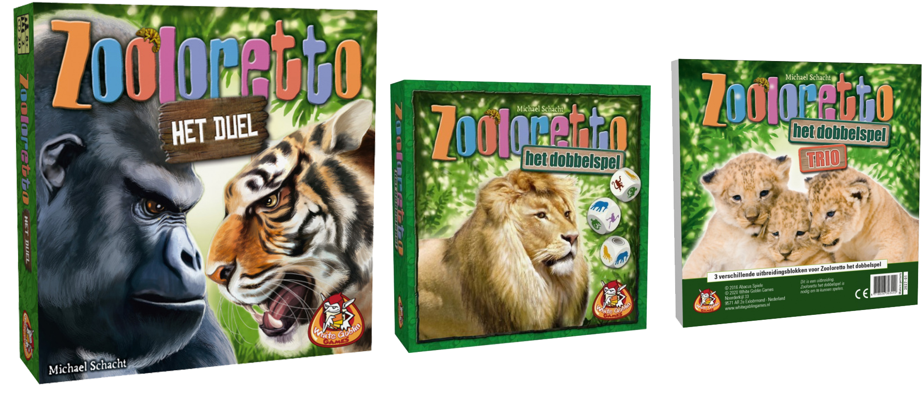 Zooloretto dobbelspel trio voegt drie uitbreidingsblokken toe: Babyboom, Apenkooi en XXL.