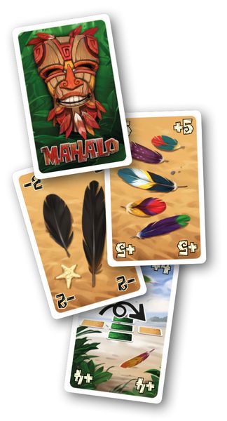 Er zitten ook drie soorten speciale kaarten in het spel. De speciale kaarten bevatten de symbolen water, vuur of lucht. Met de brandingkaart (water) spoelen er nieuwe veren op het eiland aan en krijg je meteen een tweede beurt. Je krijgt dus een extra beurt en mag dus twee kaarten van de trekstapel nemen. Het kampvuur vernietigt een reeds aangelegde kaart. Je verwijdert de kampvuurkaart samen met een andere al aangelegde kaart uit het spel. Als je dit niet wil doen, kan je de kaart ook gewoon als zwarte verenkaart gebruiken (kampvuurkaarten hebben een negatieve waarde van 2 tot en met 5). Tot slot heb je de windkaart. Deze kaart zorgt ervoor dat je één gespeelde kaart van kant kan wisselen bij een masker. Wil je dit niet doen, dan speel je de kaart als gekleurde verenkaart (windkaarten hebben een positieve waarde van 2 tot en met 5).