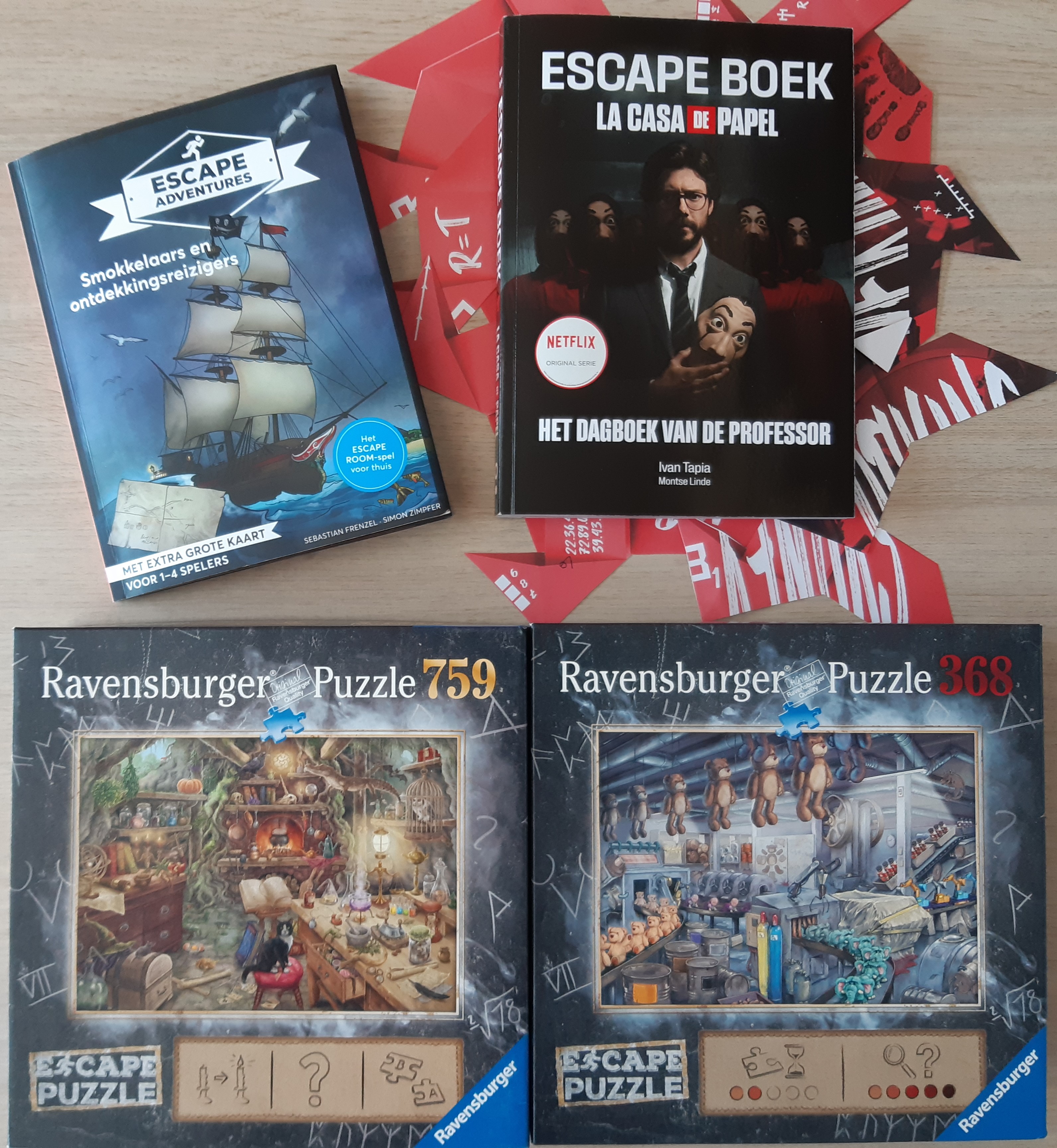- Escape Puzzles: De heksenkeuken, De verboden Kelder en De speelgoedfabriek.