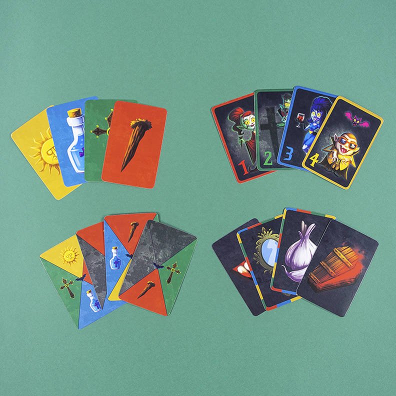 Met een knoflookkaart dwingt u de volgende speler een beurt over te slaan. Als u graag handkaarten ruilt met een andere speler, moet u een spiegel op tafel gooien. Een doodkist doet een extra vampier ontwaken en als een vampier van zich afbijt (vampierbeet) worden alle kaarten er rond terug afgelegd.