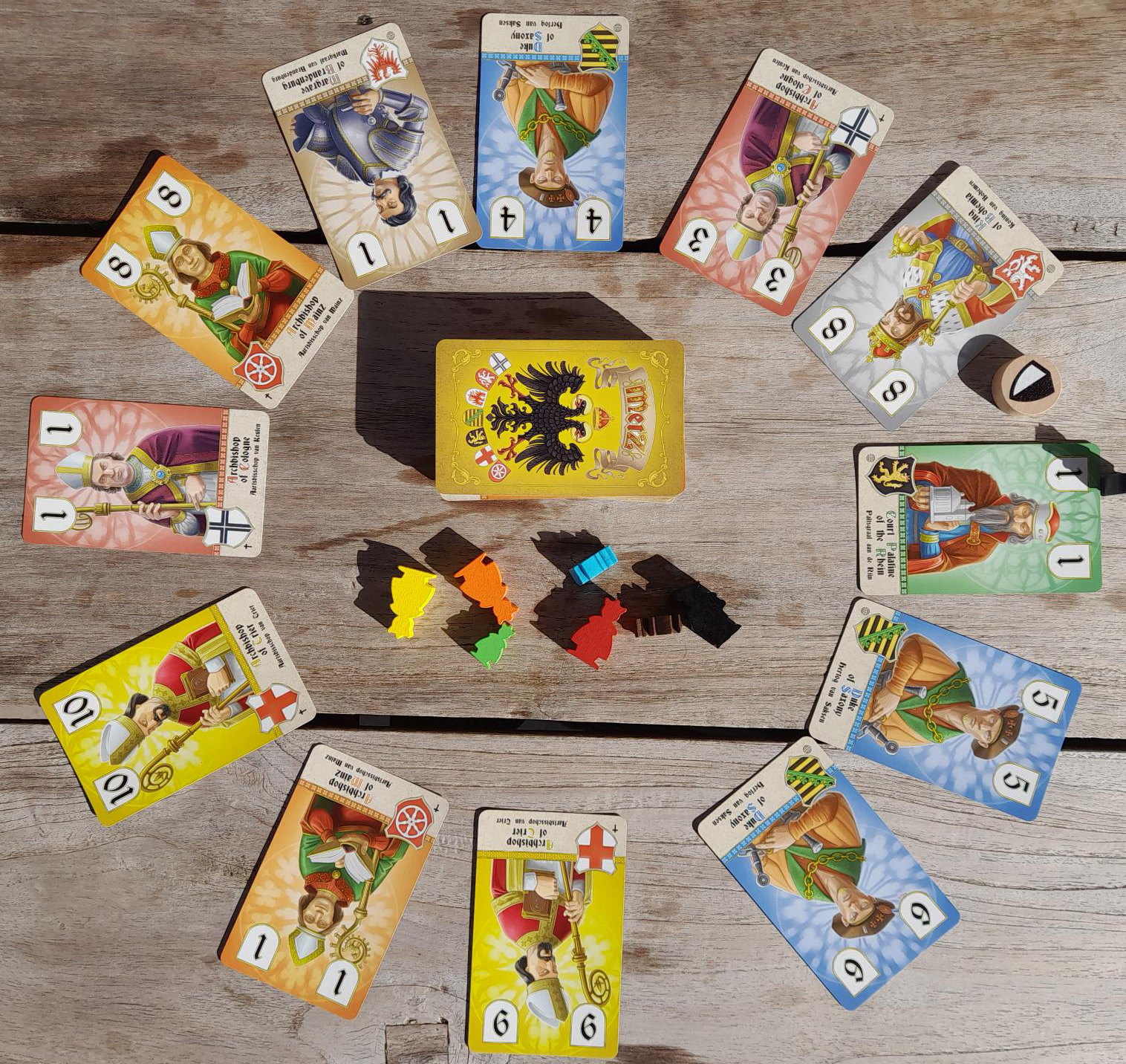 Kaarten in het speelgebied worden per kleur gesorteerd en moeten van laag naar hoog gespeeld worden. Als u na het spelen van een kaart in die kleur het meest kaarten bezit, mag u de overeenkomstige keurvorst in uw speelgebied plaatsen. Bij gelijkstand trekt de keurvorst naar de speler die de hoogste kaart bezit.