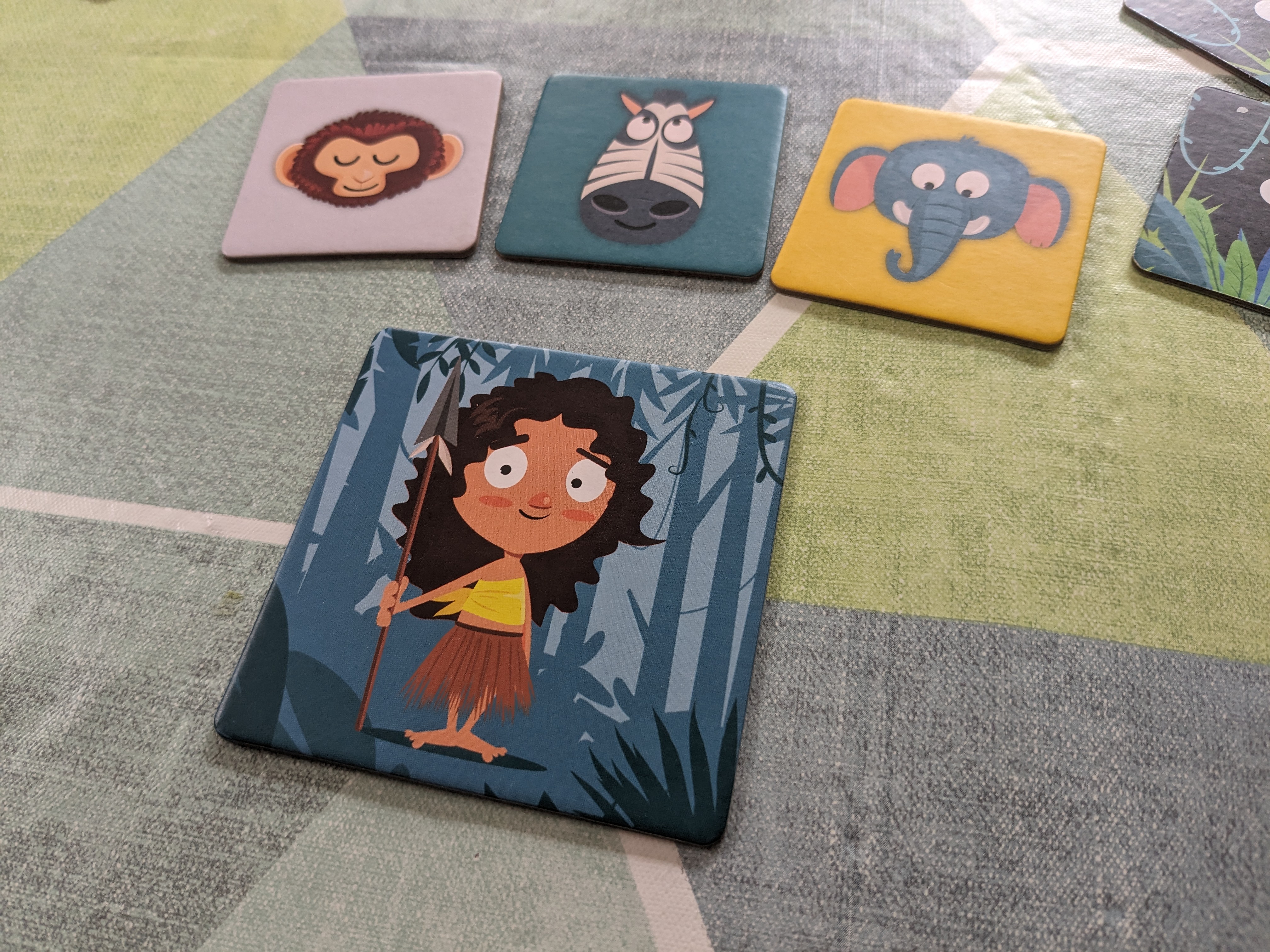 In de kinderversie speelt de totem ook een centrale rol. Wie hem als eerste vastheeft, wint de ronde. Rondom de totem leg je dierkaarten met de afbeelding naar beneden.