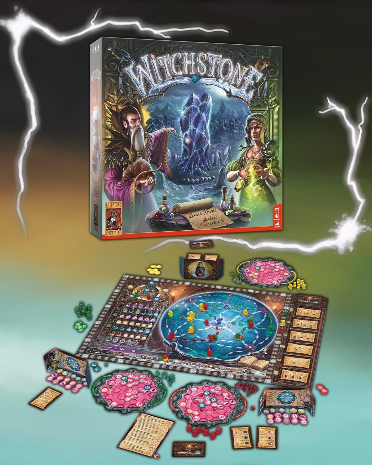 Witchstone is ontworpen door Reinier Knizia en Martino Chiacchiera. Het artwork is verzorgd door Mariusz Gandzel.