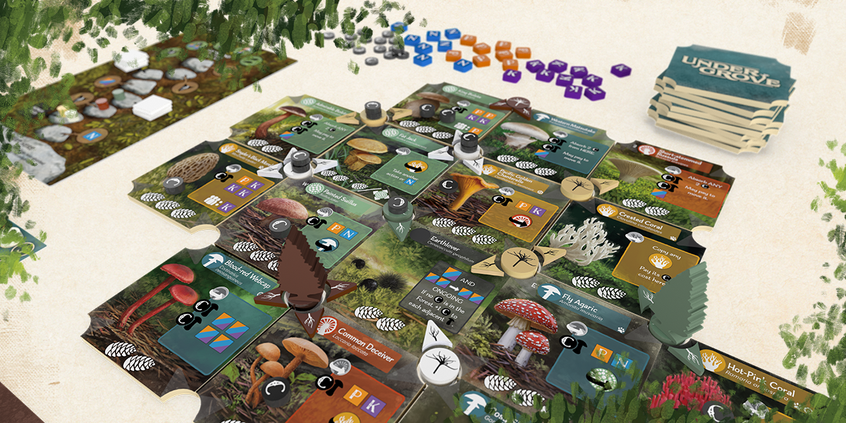 Undergrove is geïnspireerd op de al meer dan 300 miljoen jaar oude uitwisseling van voedingsstoffen tussen bomen en zwammen langs een uitgestrekt ondergronds netwerk. Wetenschappers ontdekken nog steeds nieuwe aspecten van deze verborgen wereld. Undergrove vertaalt dit natuurlijk proces in een meeslepende spelervaring met prachtige illustraties van o.a. Beth Sobel.