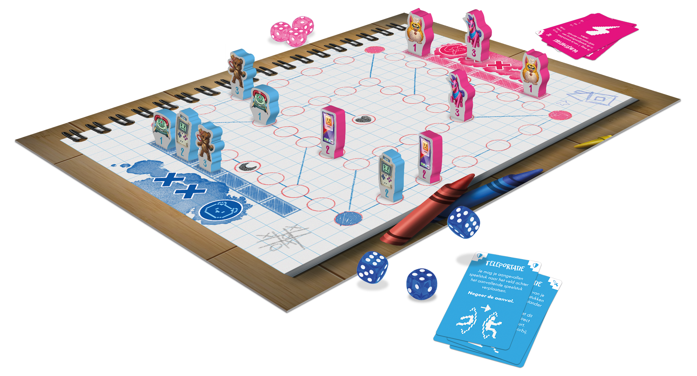 Toys is een tactisch spel voor twee spelers waarin oud speelgoed en nieuw speelgoed de strijd met elkaar aangaan. Probeer het overwinningsveld van je tegenstander te veroveren met behulp van de juiste strategie om je over het bord te verplaatsen en het op het juiste moment inzetten van actiekaarten.