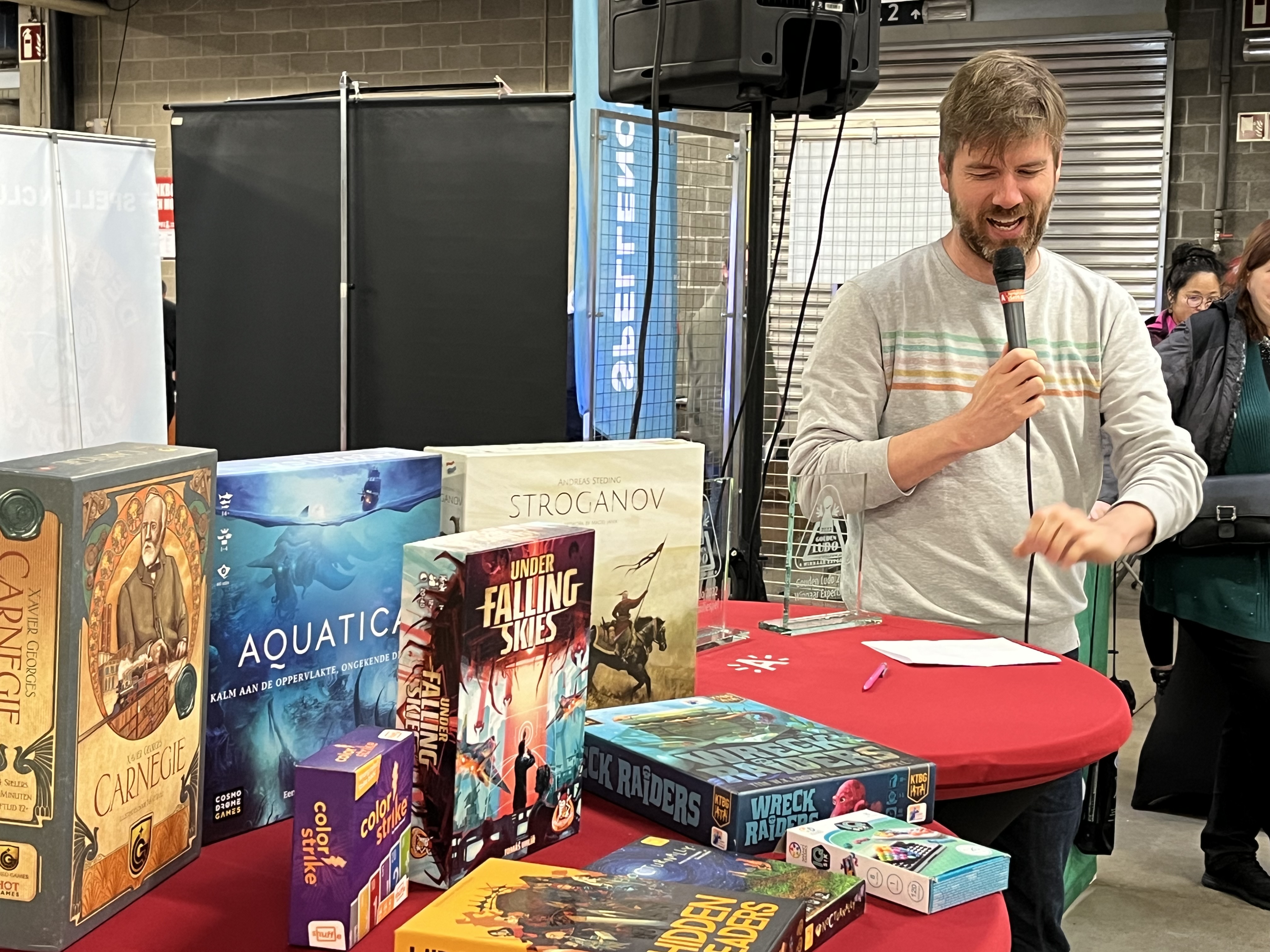 Tijdens Spel 2022 werden de Gouden Ludo's (prijswinnaars: klik hier) uitgereikt door niemand minder dan Bart Cannaerts, comedian, presentator, bijna Slimste Mens en ook fervent bordspeler.