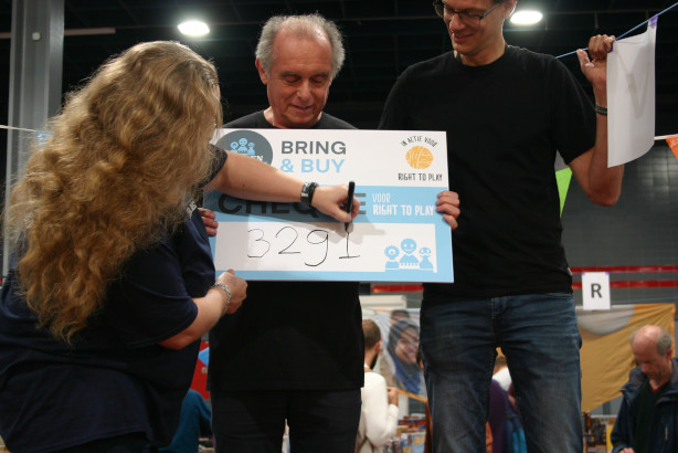 Ook dit jaar ging 10% van de opbrengst van de verkochte spellen naar Right to Play. Op zondag rond de klok van 17u werd het resultaat bekendgemaakt: €3291 kan besteed worden aan het goede doel.