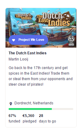 The Dutch East Indies is een spel met hele eenvoudige regels maar biedt toch vele strategische mogelijkheden. Met één spel kun je het met 2 tot 4 spelers spelen. Met twee spellen kunnen tot 8 spelers meespelen. De speelduur ligt tussen de 45 en 90 minuten. The Dutch East Indies is nu verkrijgbaar op Kickstarter!