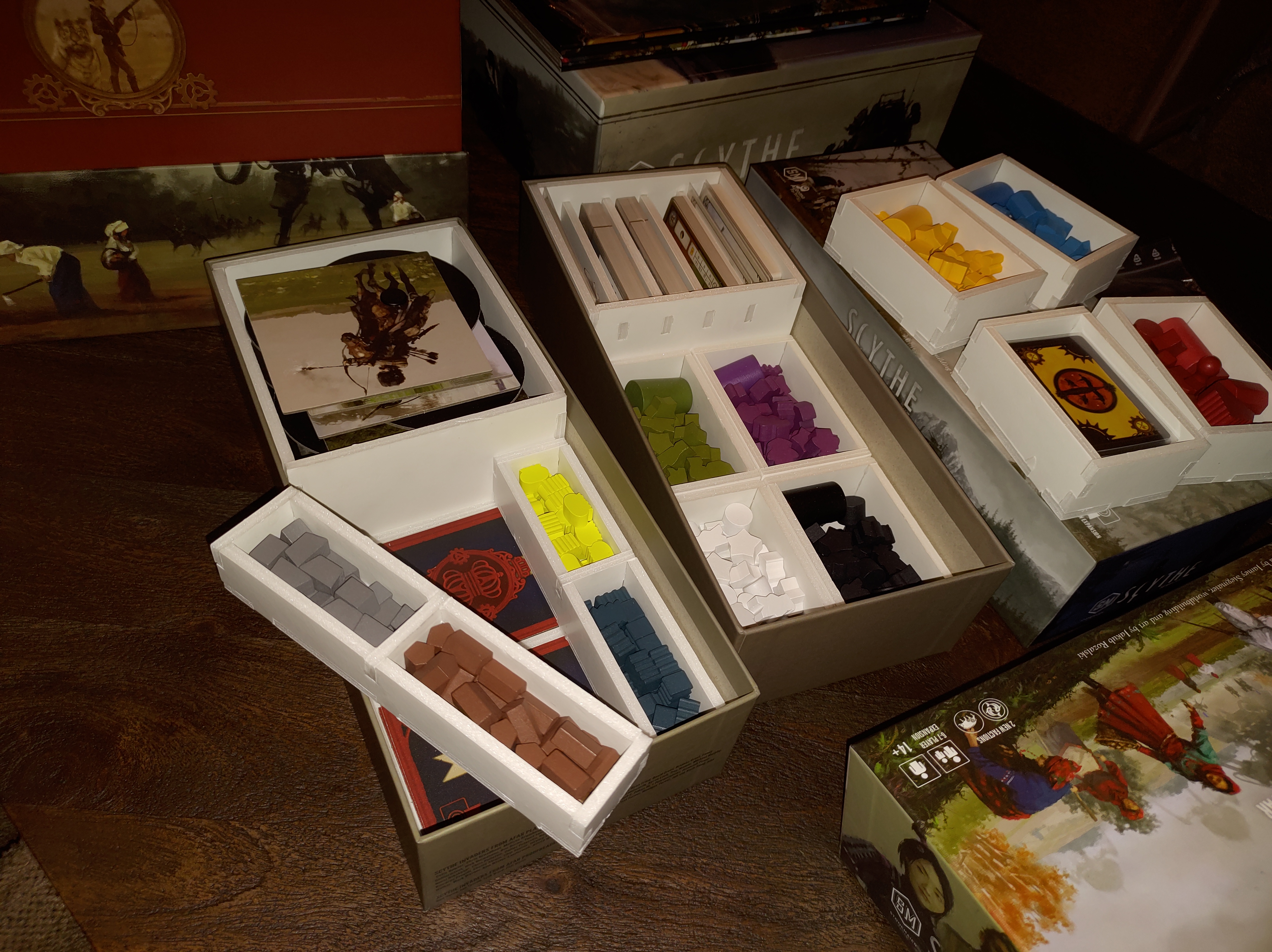 Weer aan het knutselen geslagen. Nu voor Scythe. ben nog niet helemaal klaar, maar krijg op deze manier alle uitbreidingsdozen in de Legendary Box, inclusief de Fenris doos.