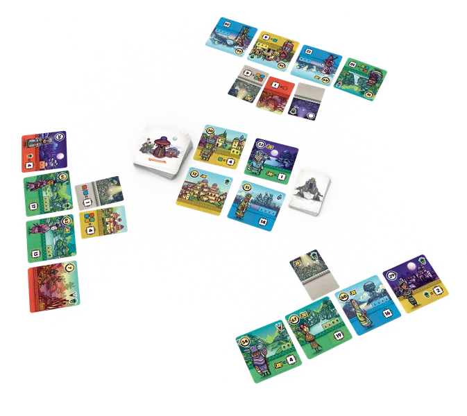 Kaarten stellen regio’s met bewoners voor. Naast een nummer kan een kaart ook extra symbolen en een voorwaarde bevatten. Meestal bestaat die voorwaarde uit een combinatie van symbolen. Die moeten op het moment dat de kaart gewaardeerd wordt zichtbaar zijn om punten te ontvangen.