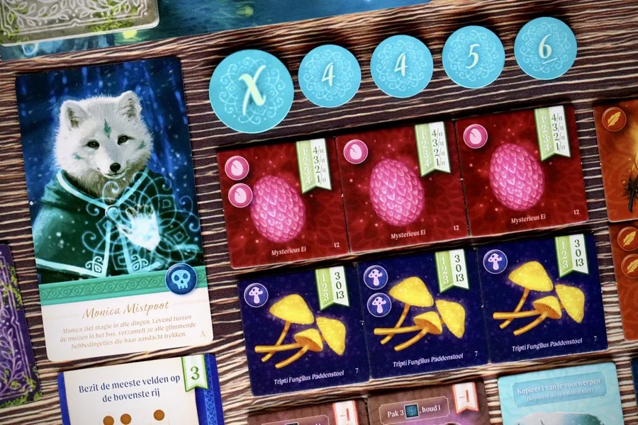 Er is ook een solovariant van Nocturne, maar zoals jullie ongetwijfeld weten, ben ik geen solospeler. Daarnaast bevatten de spelregels ook een familievariant (met eenvoudiger spelregels, lees geen opdrachtkaarten, schaduwtoverspreukfiches en bosgeestenbord) en scenario’s en prestaties voor spelers die maar niet genoeg van Nocturne krijgen.