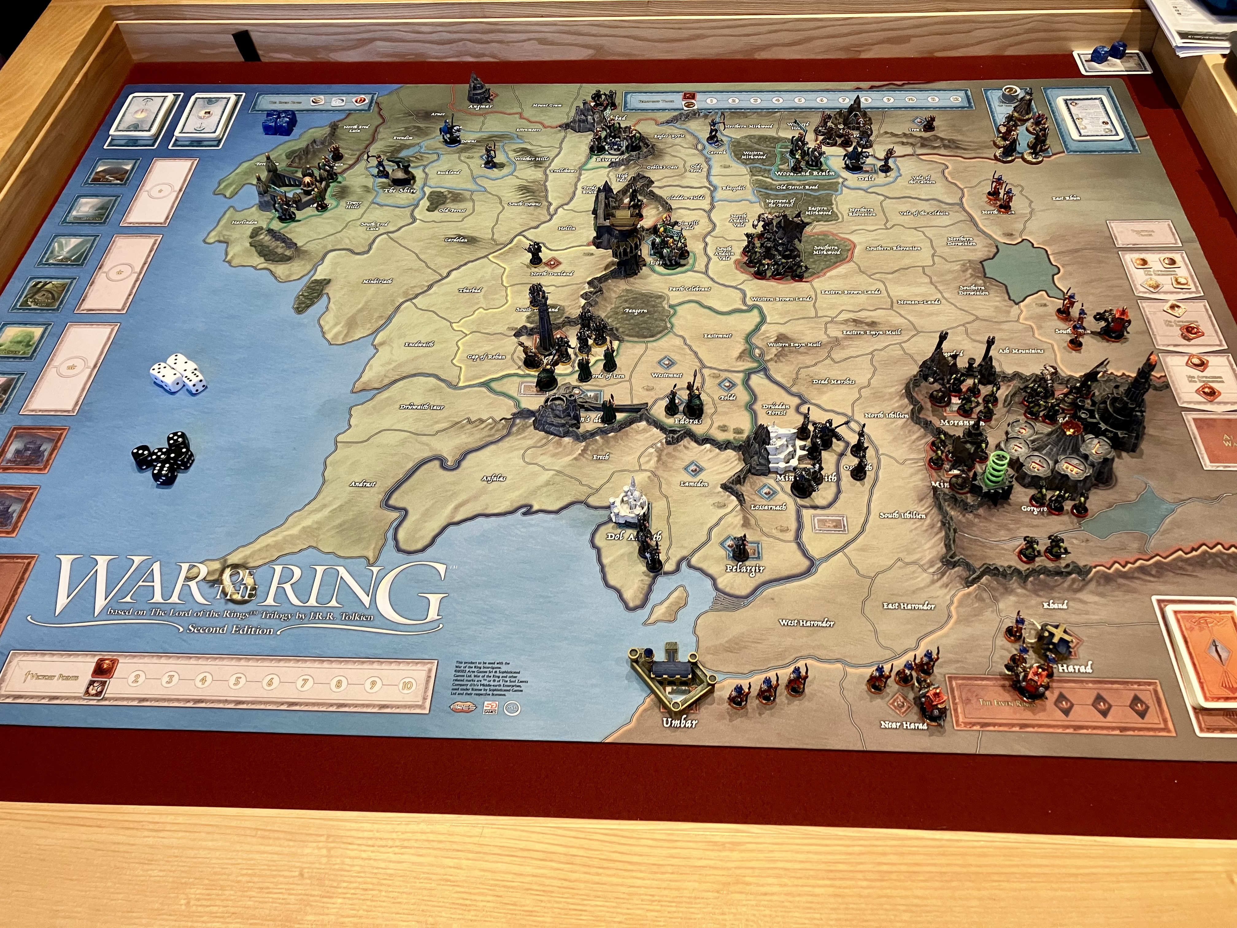 War of the Ring, zonder twijfel. Toen ik het spel in 2004 of 2005 kocht, kwam er enkele jaren nadien (2010 meen ik) die dure collectors edition uit van de eerste editie. Destijds zag dat er echt vet uit en ik hoopte via mijn toenmalige speciaalzaak een exemplaar op de kop te tikken, maar we waren net te laat. Geleidelijk aan heb ik besloten om zelf aan de slag te gaan met de miniaturen. Ares bracht dan de tweede editie uit, enkele jaren later nog maar eens een luxe-editie en dit jaar voor de verandering nog maar eens een luxeversie...