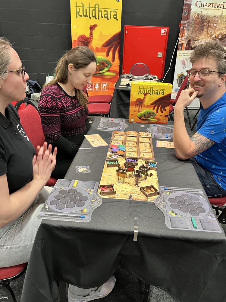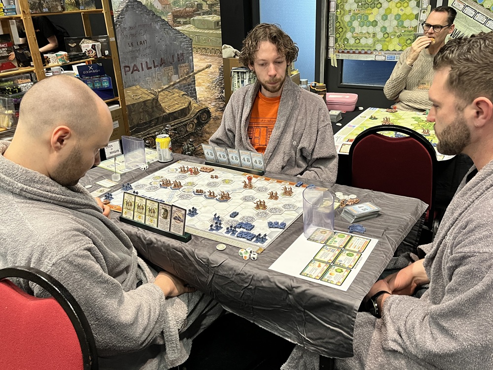 Zaterdag over de beurs, best wat gespeeld, ook langere spellen. Ontdekking van de beurs: meister der renaissance! Erg leuk bij rollthedice. Leuk van deze beurs vind ik vooral de gezelligheid, alle bekenden die je tegenkomt en een praatje mee maakt of dan juist aanschuift samen voor een spelletje. Wat mij betreft is er juist veel mogelijkheid tot spelen op deze beurs, altijd wel een plekje vrij ergens. En anders wacht je even.