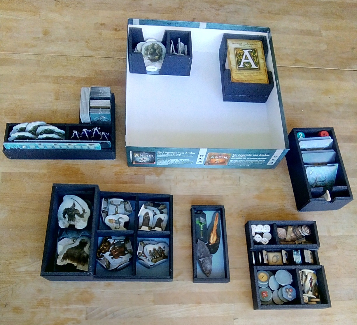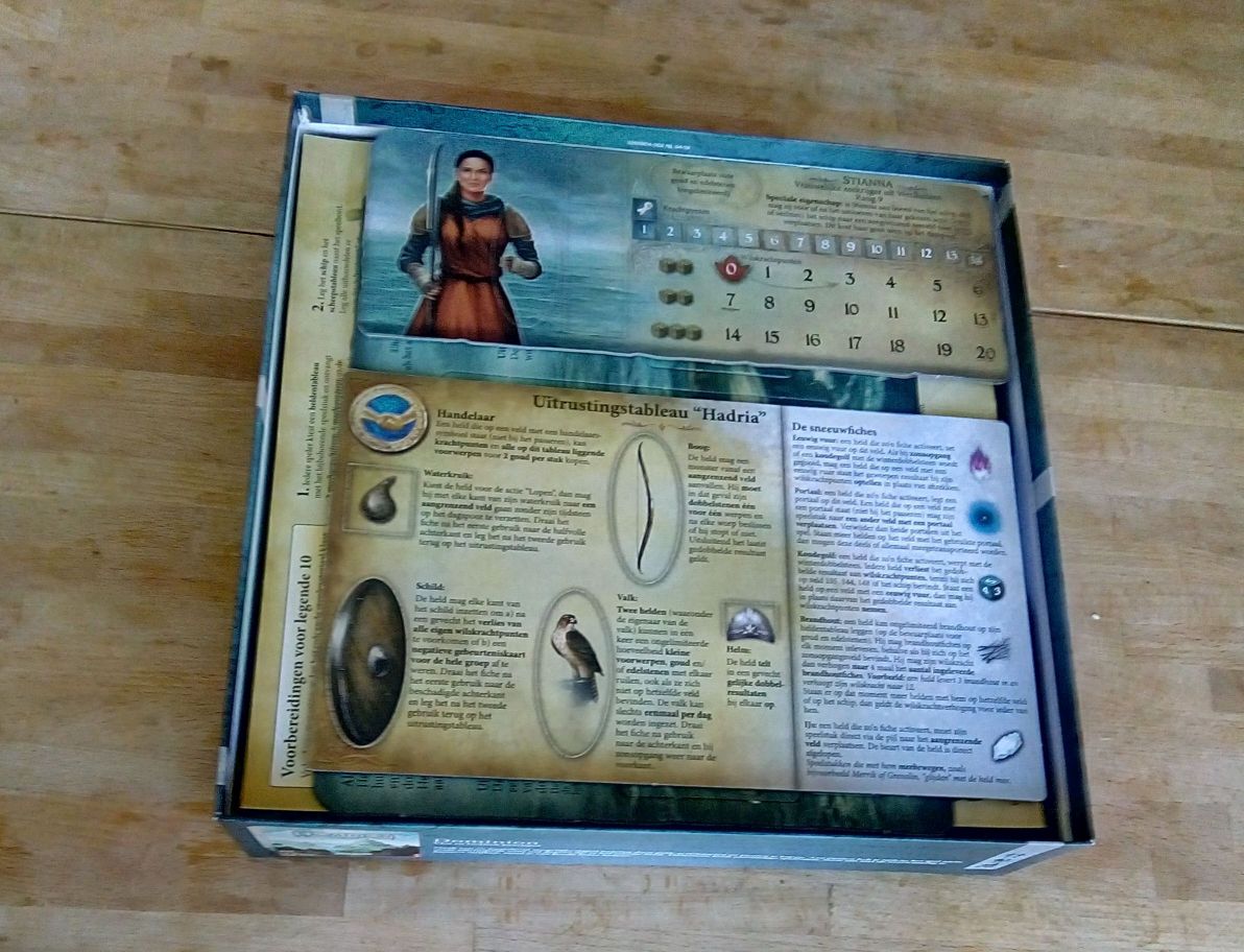 Mijn opberg-systeem voor Andor II: Reis naar het Noorden. Als eerste: alle platte dingen bovenop.