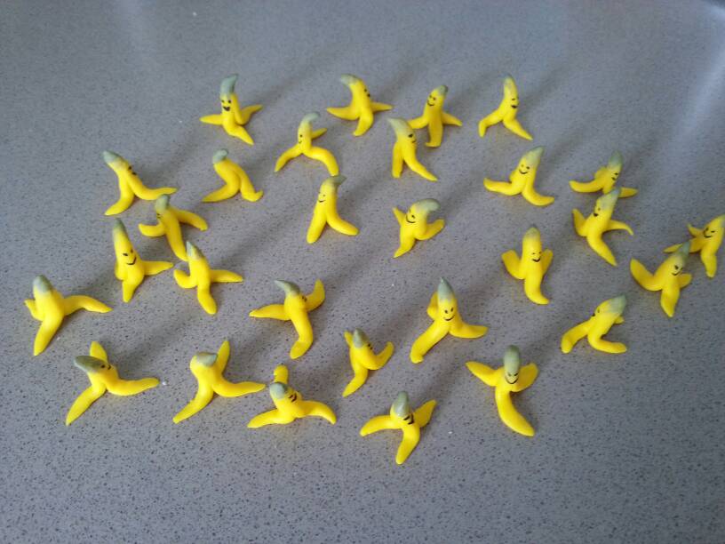 Wellicht een rare titel, maar ben met een spelletje bezig en zoek dus miniatuur banaantjes. Geen fiches maar 3D... wie weet of er een spel is met deze onderdelen of waar iets los te koop is?