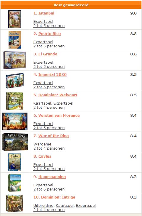 Ha, ik zie nu pas onze nieuwe nummer 1! Istanbul heeft zijn vijf waarderingen binnen, allemaal negens... Oef. Ik was al geïnteresseerd, maar nu helemaal! Echt zo'n goed spel? En ook echt binnen een uur te doen?