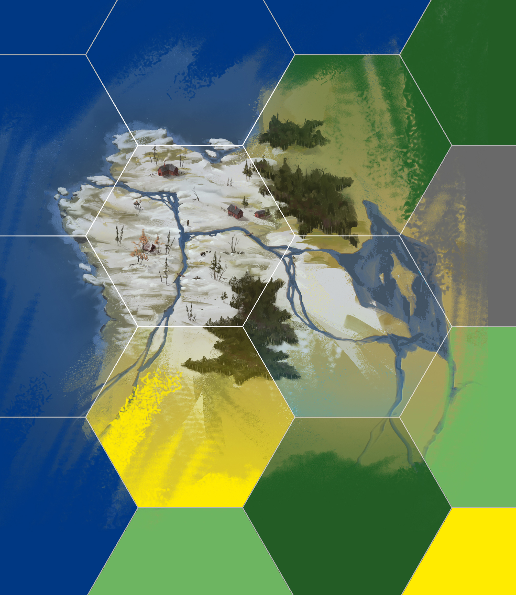 Ik betrek graag jullie, spelexperts van Nederland en België bij onze uitgeverij. We werken aan een nieuw spel, waarbij spelers een civilizatie zijn (bv Romeinen, Egyptenaren) en een bijbehorend monument (Colossus van Rhodes, Pyramide) moeten bouwen. We zijn inmiddels zover dat we de artwork voor een deel van het bord willen gaan maken. Wat vinden jullie van deze sample? Spreekt het aan? Het gaat nu nog even niet om de functionaliteit (wat je op deze hex kunt doen) maar puur om de richting van de artwork.