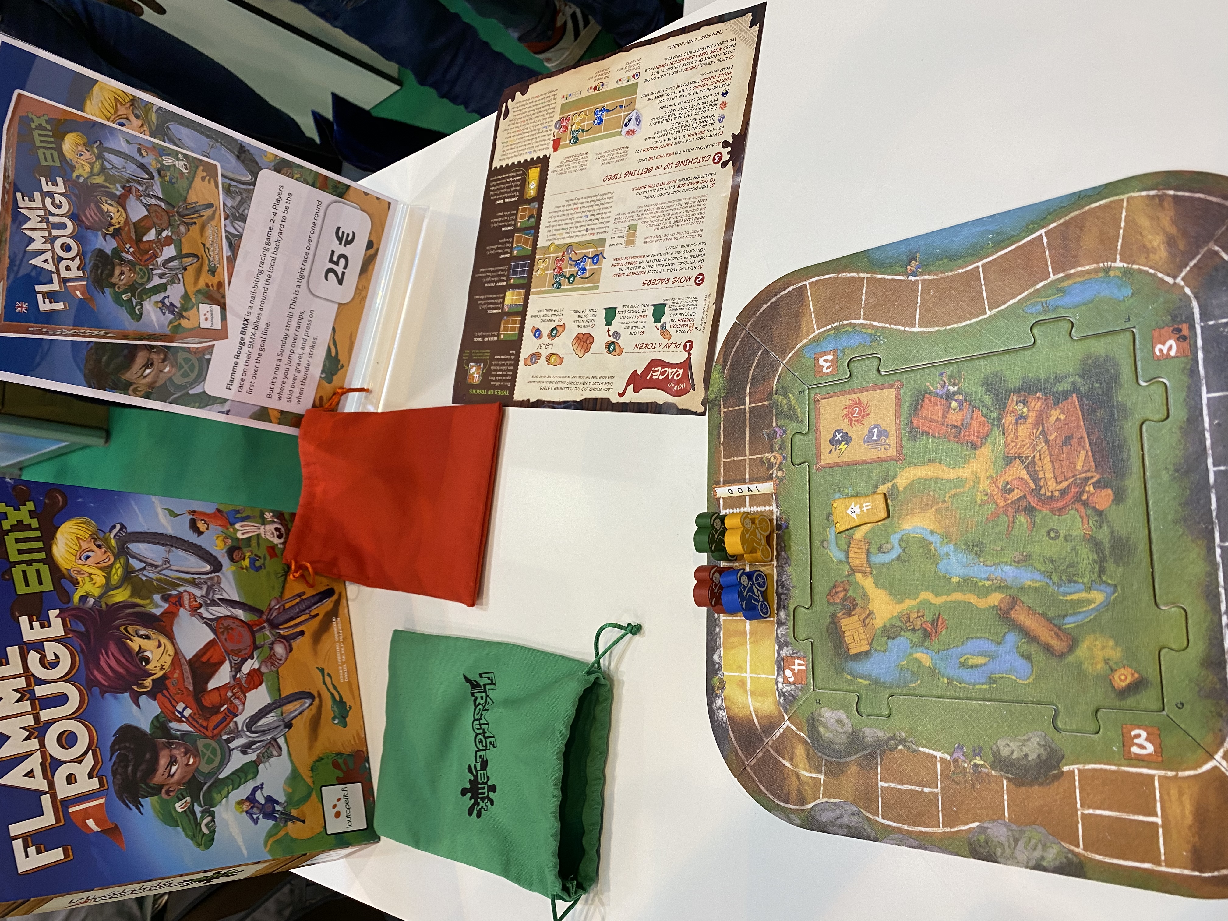We hadden geluk en konden nogmaals een tafeltje doorschuiven bij de Finnen. Nu speelden we Flamme Rouge BMX. Het is een kortdurender spel dan de originele Flamme Rouge, met dezelfde spelmechanismen. Grappig spel voor tussendoor, alleen voor ons wederom geen collectiemateriaal.