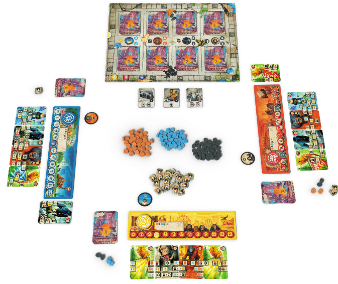 80 punten is waarnaar elke speler streeft in deze deckbuilder. Daarvoor moet elke ronde een apenraad van exact 4 primaten samengesteld worden. Elke speler trekt daarvoor 4 kaarten van zijn persoonlijke stapel. (Die bestaat bij de start van de strijd uit 8 kaarten.)