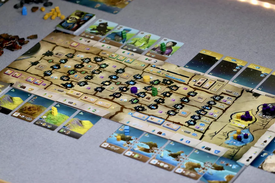 Rusten is nodig om dobbelstenen te resetten en proviand in te slaan. Inwoners kunnen daarbij helpen. Het is ook het ideale moment om uw avonturen neer te schrijven. Daarvoor wordt het centrale speelbord gebruikt. Als u aan de voorwaarden voldoet, boekt u vooruitgang.