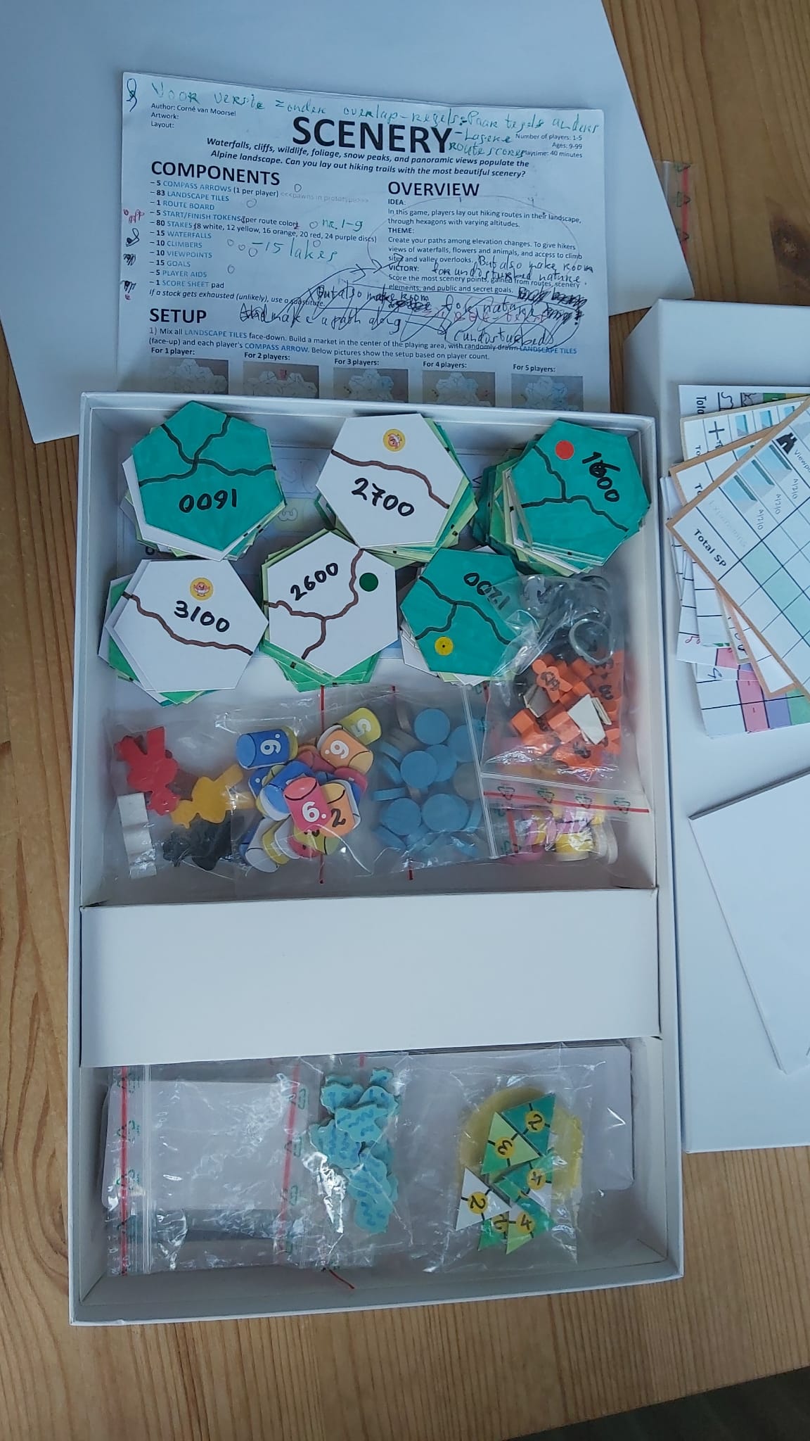 Heb net een nieuw prototype gemaakt, in deze foto, inclusief de 3 expansies (Zon, Meren, en Fotomomenten) rechts/onder te zien.