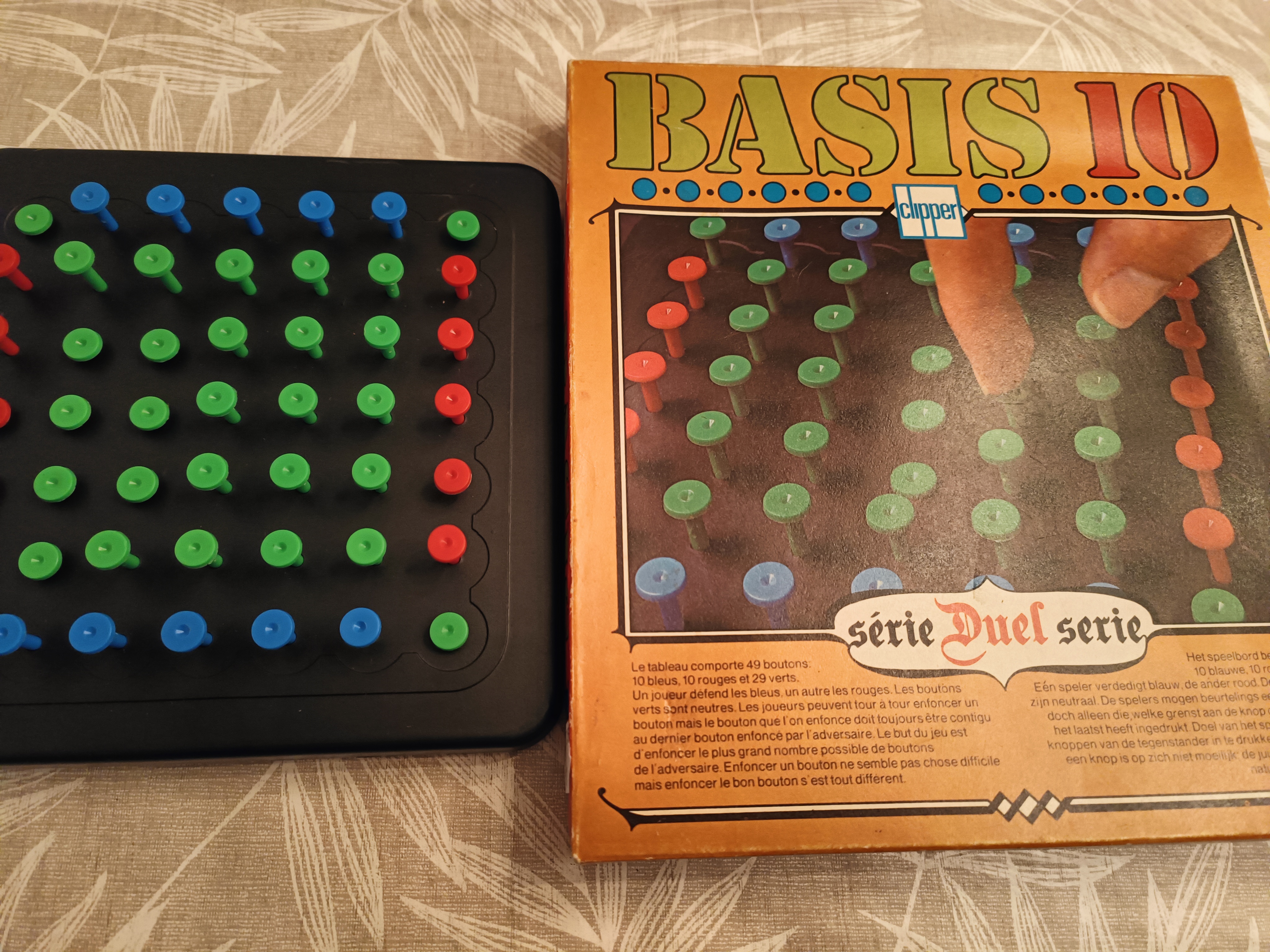 Ik heb het heeeel vroeger wel gespeeld. Wat ik me herinner: ieder speelt met een eigen kleur (blauw of rood). Om beurten moet je een pin indrukken. Elke volgende moet aangrenzend aan de vorige. Het is de bedoeling om alle pinnen van de tegenstander in te drukken om te winnen. Is meer dan 40 jaar geleden, dus ik kan er enigszins naast zitten.